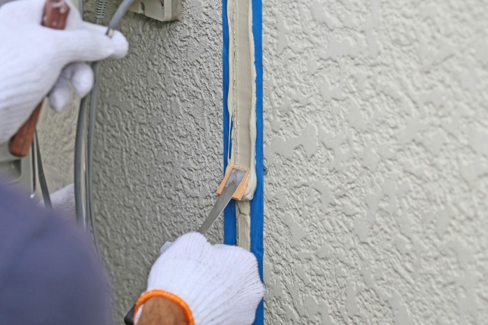 シーリング工事とは、外壁の継ぎ目や建具の隙間を埋める工事を言い、建物内部への漏水を守る大切な役割があります。シーリングはゴム状の薬剤を使用しているため、年月の経過と共に硬化し、亀裂が発生することもあります。